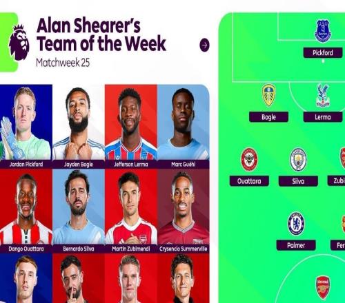 希勒評英超第25輪最佳陣:B席、格伊、B費、帕爾默、哲凱在列