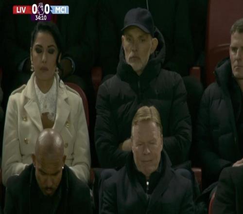 英超第25輪焦點大戰(zhàn),利物浦主場對陣曼城,英格蘭隊主帥圖赫爾和荷蘭隊主帥羅納德-科曼都在安菲爾德球場現場觀...