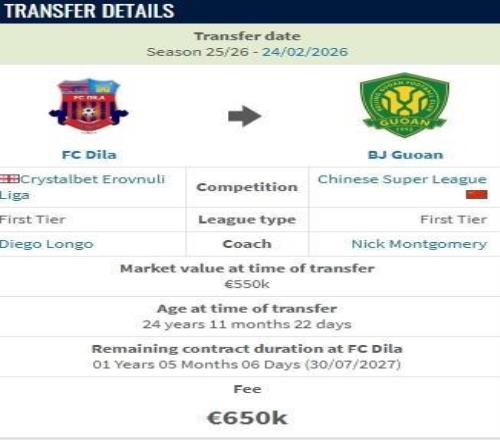 德轉(zhuǎn):馬里中場孔特加盟北京國安的轉(zhuǎn)會(huì)費(fèi)為65萬歐