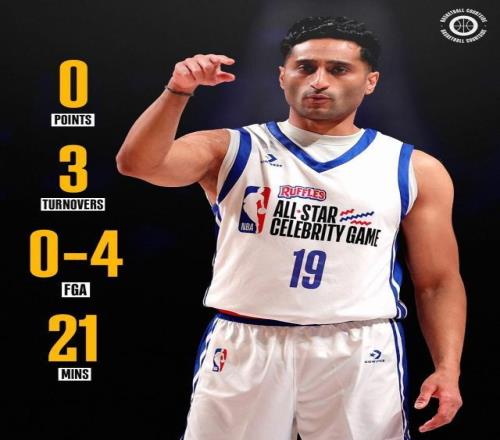 02月14報(bào)道 NBA全明星周末名人賽,名記Shams代表字母哥隊(duì)參賽,全場出戰(zhàn)21分鐘4投0中沒有得分,還出現(xiàn)3次失誤。2024年?duì)钤?、老鷹前鋒里薩謝因雷霆后衛(wèi)阿杰伊·米切爾傷缺而遞補(bǔ)進(jìn)入新秀賽名單,代表麥迪隊(duì)出戰(zhàn),但他全場上陣4分08秒5投0中,三分2中0,得分掛蛋,有1個(gè)籃板和1次助攻進(jìn)賬。