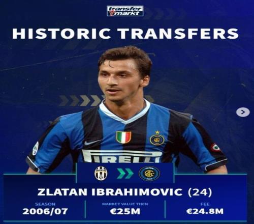 伊布,06/07賽季尤文→國米,轉(zhuǎn)會(huì)費(fèi)2480萬歐