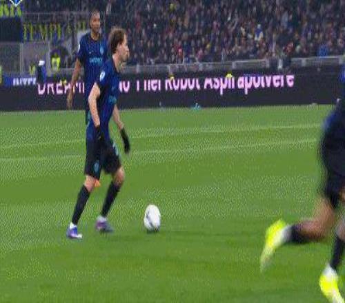 第17分鐘,恩里克傳中擊中坎比亞索變線破門,國米1-0尤文