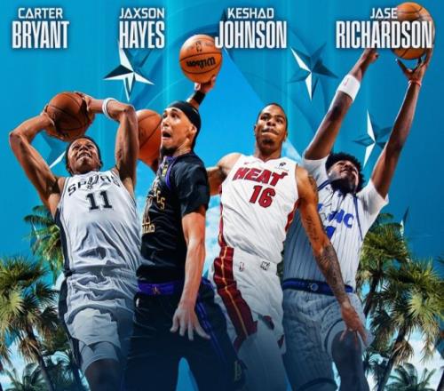 第二位登場的是兩屆扣籃王杰森-理查德森的兒子、魔術(shù)球員杰斯-理查德森,他從三分線外拋球,沖到禁區(qū)接球反彈完成拉桿小風車背扣得到45.4分。