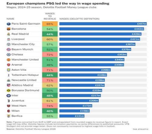 根據(jù)德勤財(cái)報(bào)的數(shù)字顯示,巴薩在2024-25賽季的人員總成本是5.15億歐元(4.42億英鎊)。所以巴薩想要滿(mǎn)足工資帽要求,就需要填補(bǔ)這一塊的空白。
