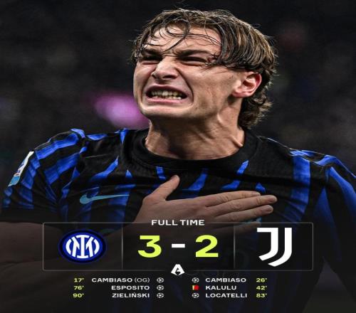 易邊再戰(zhàn),第76分鐘,迪馬爾科左路傳中,埃斯波西托力壓防守頭球破門,國際米蘭2-1再度反超。