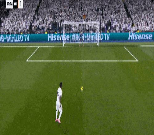 48' 維尼修斯再造點(diǎn),主罰打進(jìn)球門左下角,4-1!