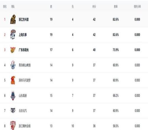 本賽季常規(guī)賽排名預(yù)測,上海隊第1、浙江廣廈隊第2、廣東隊第3、北京首鋼隊第4,遼寧隊在完成補強后大概率可以回到前8,但是想要進入季后賽四強幾乎不可能。廣東隊和遼寧隊想要在季后賽里走得更遠,不僅需要實力,還需要一些運氣。