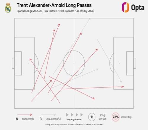 據(jù)《馬卡報》報道,憑借精準傳球和戰(zhàn)術(shù)智慧,阿諾德正成為皇馬進攻體系中不可或缺的進攻組織者。