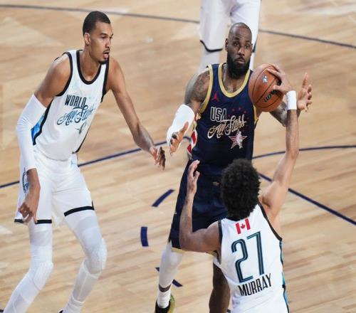 詹姆斯在自己第22次全明星之旅,合計(jì)得到15分7籃板5助攻,而杜蘭特合計(jì)得到12分3籃板2助攻3搶斷1蓋帽數(shù)據(jù)。