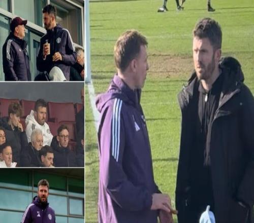 球員間爆發(fā)混戰(zhàn),裁判瘋狂吹哨,兩張紅牌出示。周六下午,邁克爾-卡里克就站在家長群中,目睹了這一切??ɡ锟爽F(xiàn)身曼城青訓(xùn)學(xué)院,觀看兒子參加的U16曼市德比。他身著黑色運(yùn)動套裝、黑色外套,佩戴墨鏡。