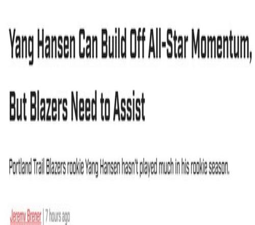 北京時間2月17日,《體育畫報》撰文談到楊瀚森,指出“楊瀚森可以借新秀賽勢頭更進(jìn)一步,但開拓者也需要給他機(jī)會”,具體內(nèi)容如下——