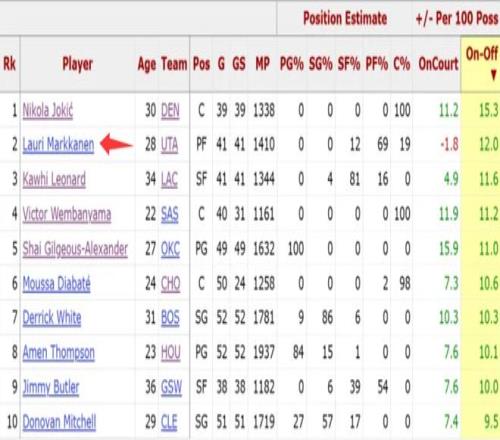 誰也不會想到猶他爵士隊的馬爾卡寧會跟約基奇、倫納德成為該數(shù)據(jù)的聯(lián)盟前三,因為馬卡所在的爵士隊是一支擺爛的球隊。