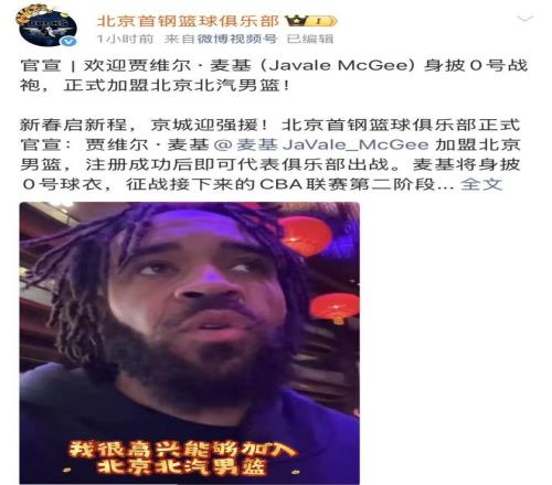 這位擁有NBA冠軍基因的內線,已經迫不及待,麥基難掩興奮,他表示很榮幸加入北京北汽男籃,期待與隊友并肩作戰(zhàn),用激情與實力回饋京城球迷,還特意通過視頻的方式為大家送上新春祝福!