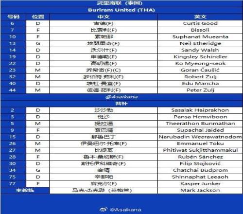 武里南聯(lián)首發(fā):13-埃瑟里奇、6-古德、14-沃爾什、19-申德勒、40-曼查、22-高明錫、23-喬希奇、32-羅伯特-祖伊、44-彼德-祖伊、7-比索利、10-素帕那