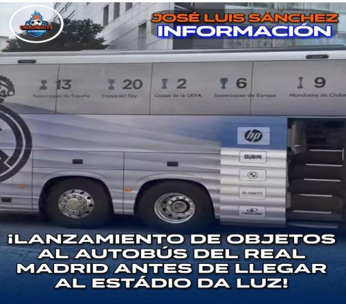 北京時間2月18日,根據(jù)西班牙六臺El Chiringuito TV的報道,皇家馬德里全隊乘坐的大巴在前往光明球場的路上遭到了本菲卡球迷的攻擊。
