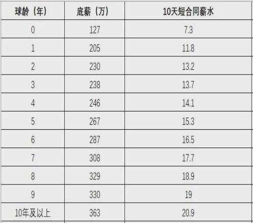 10天合同能拿多少錢?NBA一個賽季是174天,10天合同的薪水就是NBA底薪除以174,再乘以10。由于球員在NBA效力年限不同,底薪合同以及10天合同的金額也不一樣。普拉姆利已經(jīng)打了13個賽季,10天合同能拿到20.9萬美元。