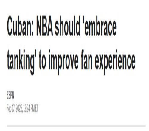 北京時(shí)間2月18日,馬克-庫(kù)班公開(kāi)支持NBA擺爛。這位前獨(dú)行俠老板表示,NBA應(yīng)該“擁抱擺爛”,首要原因就是球迷觀賽體驗(yàn)。