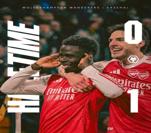 北京時間2月19日,在英超第31輪率先進行的一場比賽中,阿森納依靠薩卡開場5分鐘的進球客場1-0領先狼隊結束上半時的較量。
