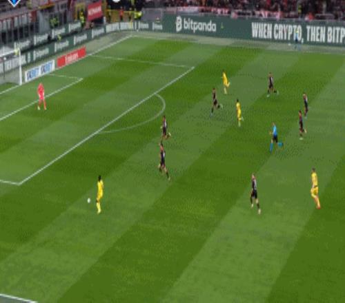 第25分鐘,科莫險(xiǎn)些偷襲成功。沃伊沃達(dá)小角度破門,不過(guò)因?yàn)樵轿辉谙缺慌袩o(wú)效,米蘭逃過(guò)一劫。