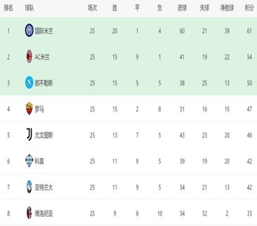 本場(chǎng)過后,AC米蘭遭遇本賽季第9場(chǎng)平局,雖然他們繼續(xù)保持不敗,但是結(jié)果卻很致命。如今踢完25輪比賽,AC米蘭還落后國(guó)米7分,這個(gè)差距足以讓他們無緣聯(lián)賽冠軍。不得不說,AC米蘭確實(shí)太不爭(zhēng)氣了。他們面對(duì)實(shí)力不如自己的對(duì)手,無論主場(chǎng)還是客場(chǎng),經(jīng)常會(huì)丟分,而這也是他們?nèi)缃癖粐?guó)米拋離的主要原因。