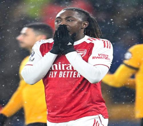 比賽剛開場(chǎng)5分鐘,槍手就打出夢(mèng)幻開局。賴斯左側(cè)送出精準(zhǔn)傳中,薩卡后點(diǎn)高高躍起頭槌破門,阿林納1-0領(lǐng)先;薩卡終于終結(jié)了長達(dá)15場(chǎng)比賽的進(jìn)球荒。進(jìn)球之后,阿森納牢牢掌控節(jié)奏,控球、壓迫、射門,幾乎壓得狼隊(duì)喘不過氣。