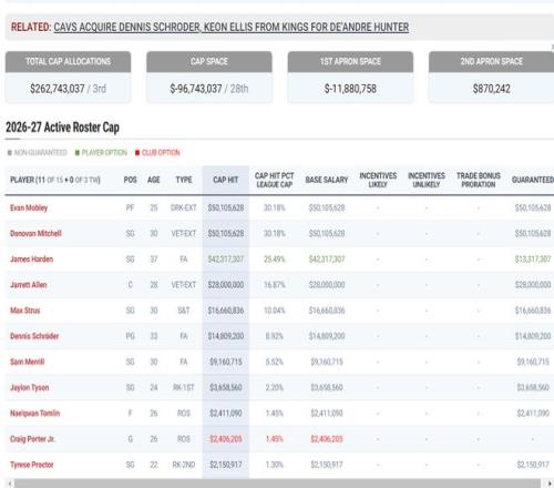 而且根據(jù)CBS的報(bào)道,詹姆斯重返騎士隊(duì)有三種方式,第一種就是最簡(jiǎn)單的底薪加盟,騎士隊(duì)2026年有28順位簽,騎士隊(duì)下賽季保障名額就是12人,預(yù)計(jì)騎士將超過(guò)第二土豪線200萬(wàn)(還沒(méi)算續(xù)約埃利斯;)