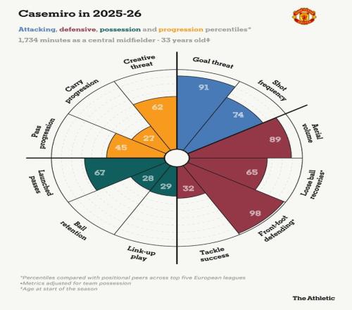 人們對卡塞米羅的未來產(chǎn)生了疑問,尤其是他的體能下滑后。而且,曼聯(lián)主帥的戰(zhàn)術(shù)安排,沒有給卡塞米羅幫助,尤其是魯本·阿莫林的343陣型,中場中路只有兩人,搭檔還是布魯諾·費爾南德斯,卡塞米羅需要覆蓋太大區(qū)域,防守時經(jīng)常頗為狼狽。畢竟,胖虎下個月就34歲了。