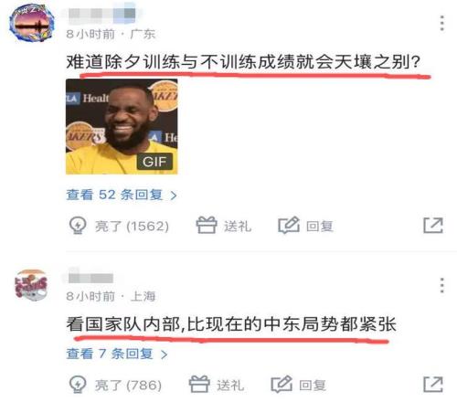 因?yàn)槊看沃袊谢@的集訓(xùn)時(shí)間總是很長,戰(zhàn)績卻不盡人意,加上這次趕上春節(jié)也未能給球員放假,這也引起了球迷的熱議:“假裝努力”、“難道除夕訓(xùn)練與不訓(xùn)練成績就會(huì)天壤之別?”也有人把矛頭指向郭士強(qiáng),稱“一將無能”。