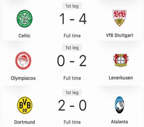 本周結(jié)束的歐戰(zhàn)淘汰賽附加賽首回合,多特蒙德歐冠主場(chǎng)2-0擊敗亞特蘭大,勒沃庫森歐冠客場(chǎng)2-0戰(zhàn)勝奧林匹亞科斯,斯圖加特歐聯(lián)杯客場(chǎng)4-1完勝凱爾特人,德甲三隊(duì)全部贏球,晉級(jí)形勢(shì)大好。