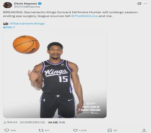 北京時間2月21日上午,據(jù)NBA名記Chris Haynes報道,國王前鋒德安德烈-亨特接受眼部手術(shù),本賽季報銷!最近三天,國王已經(jīng)有三名主力賽季報銷:小薩博尼斯接受左膝半月板撕裂修復(fù)手術(shù);拉文接受右手無名指肌腱修復(fù)手術(shù)。