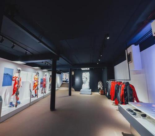 這個空間正如迪桑特在冰雪產(chǎn)業(yè)的角色和風(fēng)格——“巔峰之家”不是用來“宣告”什么的,它只是安靜地待在那里,見證著品牌與冰雪運動、與諸多國家隊伍的長期同行??臻g里人來人往,有人駐足觀看歷史墻上的競賽服,有人坐在窗邊看著雪山聊滑雪,瑞士高山滑雪隊、德國雪車隊等多支迪桑特贊助的國家隊會來這里交流互動。沒有刻意的品牌宣講,一切圍繞著滑雪自然而然地發(fā)生。