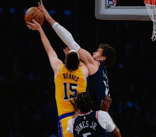 進(jìn)入下半場(chǎng),里夫斯和老詹內(nèi)突外投,老詹給艾頓送空接炸扣,湖人再度拉開(kāi)15分分差。危急時(shí)刻,大洛拋投+鄧恩反擊上籃+倫納德跳投,瓊斯也利用反擊上分,里夫斯接連失誤,只要他突破,丟球概率接近5成。后半段倫納德和馬瑟琳開(kāi)花,快船前后打出21-4的高潮,反超湖人2分!好在節(jié)末東契奇扔三分+喂餅海斯,里夫斯繼續(xù)造犯規(guī),三節(jié)打完,湖人99-95領(lǐng)先快船。決戰(zhàn)第四節(jié),范德比爾特起飛暴扣,米勒和鄧恩繼續(xù)追分,快船很快就抹平分差。里夫斯回應(yīng)關(guān)鍵三分,馬瑟琳和大洛連拿5分,打停湖人。