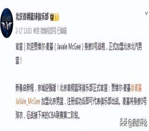 根據(jù)北京首鋼官方社媒的公示,目前已經(jīng)確定與前NBA冠軍內(nèi)線麥基達(dá)成一致,即將代表北京首鋼征戰(zhàn)下一個(gè)窗口期的比賽。