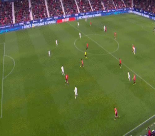 第89分鐘,皇馬后場(chǎng)失誤送大禮,塞瓦略斯回傳時(shí)直接將球“傳到”加西亞腳下,加西亞輕松斷球后傳給莫羅,后者接球往前推進(jìn)到禁區(qū)弧頂前再精妙直塞,加西亞及時(shí)跟進(jìn),禁區(qū)內(nèi)接球冷靜晃開(kāi)回防球員,超近距離大力兜射,皮球應(yīng)聲入網(wǎng),奧薩蘇納2:1絕殺皇馬??蛨?chǎng)爆冷輸球后,皇馬西甲8連勝被終止。