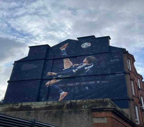 為此,蘇格蘭球迷在格拉斯哥的薩默維爾大道為他定制了一幅壁畫(huà),所在地距離國(guó)家隊(duì)主場(chǎng)漢普頓公園球場(chǎng)僅幾百米遠(yuǎn),差不多就是一個(gè)球門球的距離。蘇格蘭足協(xié)和阿迪達(dá)斯合作完成這個(gè)作品,由全球街頭藝術(shù)團(tuán)隊(duì)打造完成。