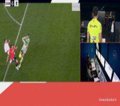 38’ 布迪米爾禁區(qū)內(nèi)被庫(kù)爾圖瓦放倒,主裁起初判罰布迪米爾假摔,VAR隨后介入,主裁在觀看錄像后改判點(diǎn)球。