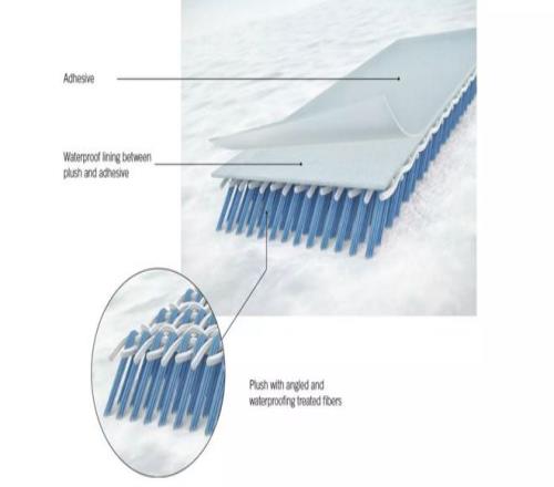 貼皮最早真的是動物皮,毛發(fā)具有天然方向性。當雪板向前移動時,纖維貼伏在雪面上,減少動摩擦,當板子試圖向后滑時,纖維豎立,與雪晶形成機械嵌合,增加靜摩擦力。現(xiàn)代貼皮采用尼龍或馬海毛(Mohair)材料,增加止滑能力的同時還能減少向前滑動時的體力消耗。貼皮的另一面則有特殊研制的膠水,能夠粘附在雪板的背面,并且可以在反復使用后依然保持粘性。