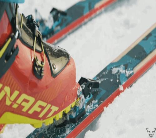 到達坡頂之后,運動員需要在極短時間內把裝備從上坡模式切換為下坡模式:撕下貼皮、鎖緊鞋靴、調整固定器結構。最后,再沿著設有旗門的坡面高速滑行沖向終點。