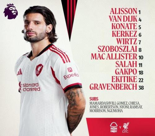 利物浦客戰(zhàn)森林:薩拉赫、加克波、?;倏耸装l(fā),維爾茨出戰(zhàn)