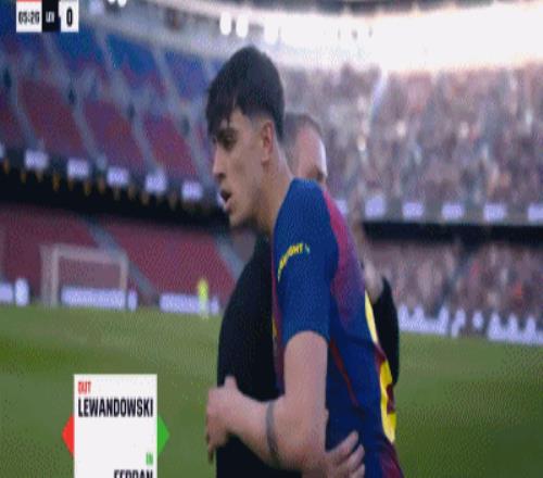 第66分鐘,萊萬被換下,佩德里替補(bǔ)登場迎來復(fù)出