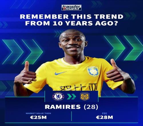 拉米雷斯(切爾西→江蘇蘇寧(已解散) 身價(jià)2500萬(wàn)歐 轉(zhuǎn)會(huì)費(fèi)2800萬(wàn)歐)