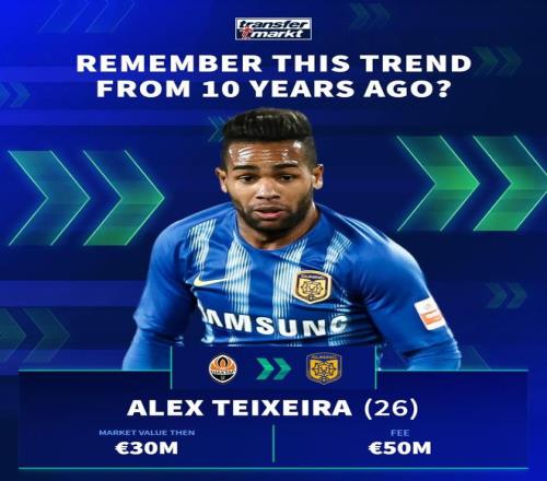 特謝拉(頓涅茨克礦工→江蘇蘇寧(已解散) 身價(jià)3000萬(wàn)歐 轉(zhuǎn)會(huì)費(fèi)5000萬(wàn)歐)