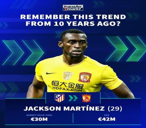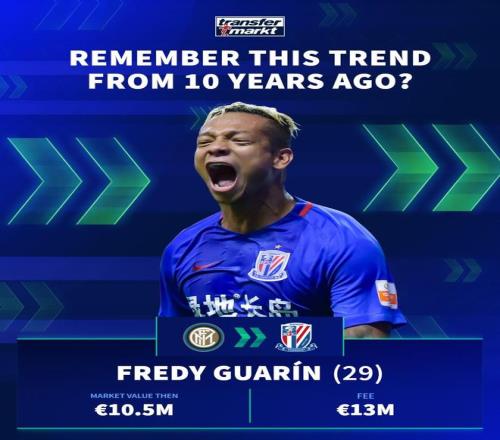 德國(guó)轉(zhuǎn)會(huì)市場(chǎng)在社交媒體上分享了中超10年前的引援,并配文道:“十年前,一股席卷歐洲足壇的潮流!”