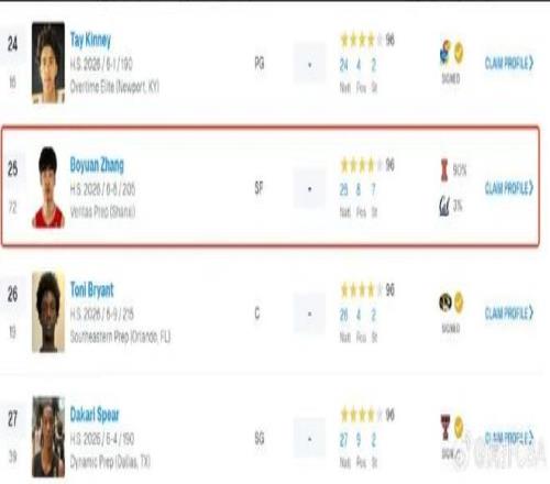 對了,張博源已被多家美國權(quán)威體育媒體評為四星高中生,其中在選秀網(wǎng)站Rivals發(fā)布的2026屆全美高中生最新排名中位列全美第25,成為該榜單排名最高的中國球員。