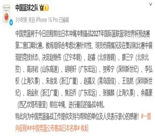 男籃世界杯亞洲預(yù)選賽第二窗口期將至,春節(jié)期間仍然在刻苦集訓(xùn)準(zhǔn)備的中國男籃,敲定了14人名單,這支隊伍將前往沖繩,繼續(xù)備戰(zhàn)與日本隊的關(guān)鍵戰(zhàn)役。此番出征,身為主教練的郭士強(qiáng)選擇了6后衛(wèi)、5鋒線、3內(nèi)線的搭配,這也是教練組綜合對手特點、球員集訓(xùn)中競技狀態(tài)和傷病情況的選擇。