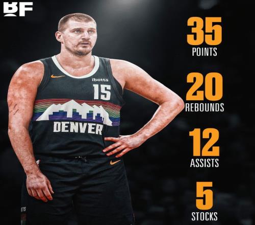全場比賽約基奇36分鐘,21中11,三分4中3,罰球11中10,拿到35分20籃板12助攻3搶斷2蓋帽,命中率52.4%,三分命中率75%,真實命中率67.7%,賽后不少掘金球迷覺得這場比賽有些假。
