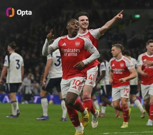 Opta統(tǒng)計,埃澤僅僅是第二名單賽季聯賽兩輪北倫敦德比打進5+球的槍手,上一個是1934-35賽季的泰德-德雷克(5個)。