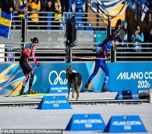 周三,米蘭–科爾蒂納冬奧會(huì)女子越野滑雪團(tuán)體資格賽正在如火如荼地進(jìn)行中。正當(dāng)選手們準(zhǔn)備最后的幾十米沖刺時(shí),一道灰黑色的身影突然從賽道邊竄了出來(lái)!