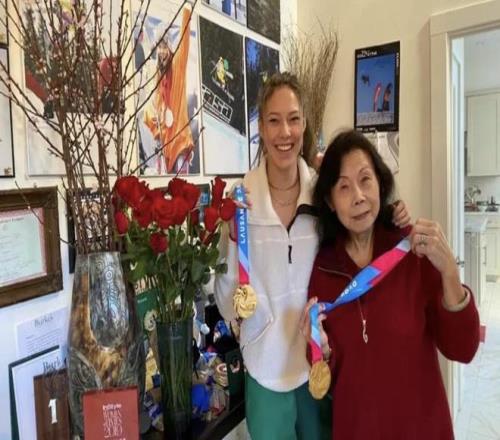 谷愛凌在贏得洛桑冬青奧的獎牌之后,和外婆分享勝利喜悅