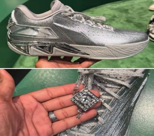 周日下午,全明星期間庫里與約內(nèi)斯庫、歐文一同訓練的照片和視頻流出:他上腳了安踏狂潮5二代,鞋跟位置赫然印有庫里品牌的Logo。